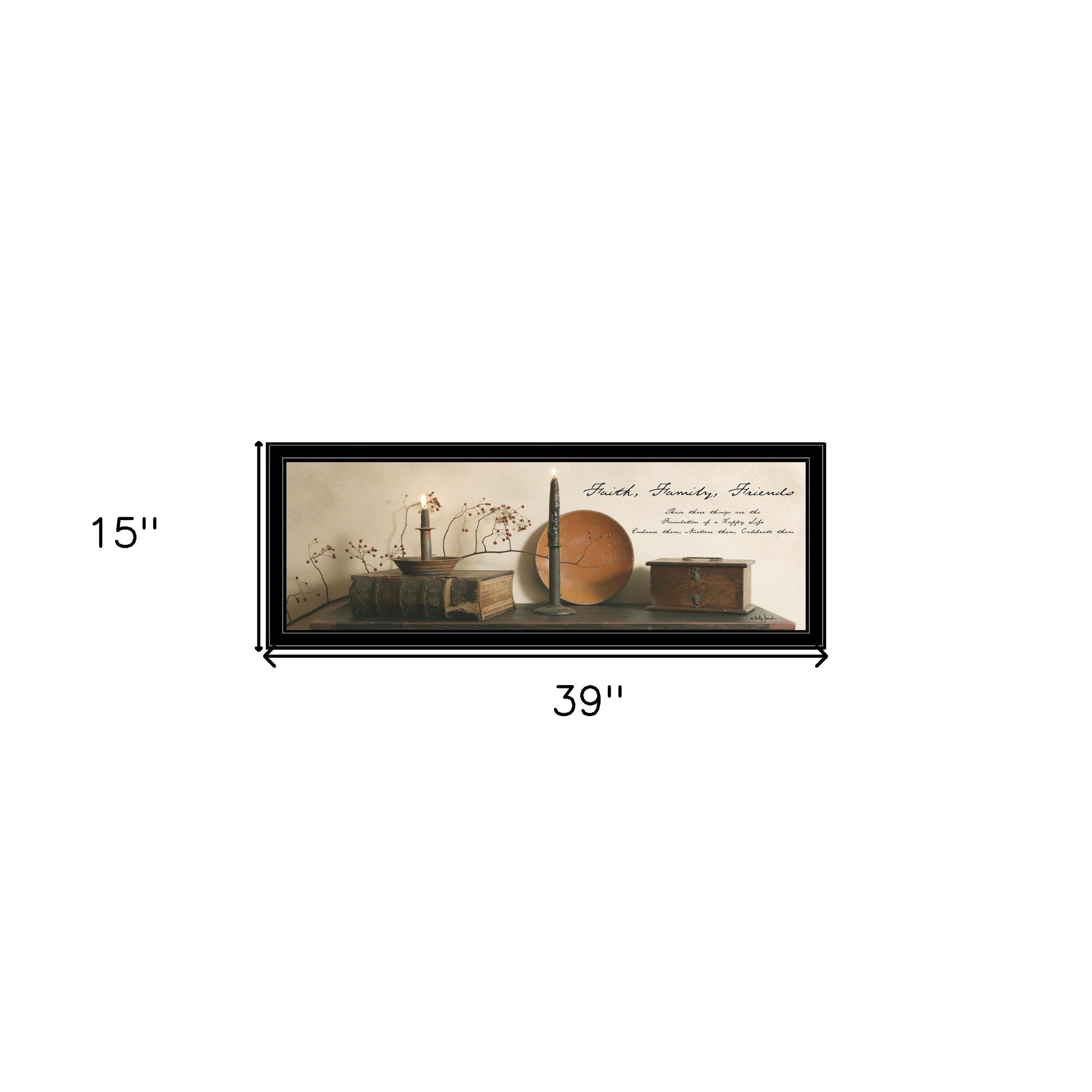 Unique and decorative, this faith family friends 2 black framed print wall art will leave a lasting impression. This print is a visual artistic expression that allows you to decorate your space in style. Reproduced for you on paper, this hanging decorative accent will be a trendy and fashionable way to dress your walls. Hang on your wall to add some up to date fashion and decoration. Instantly liven up your space with this art that brings color and dimension to your walls. 15-inch H x 39-inch W x 1-inch D
