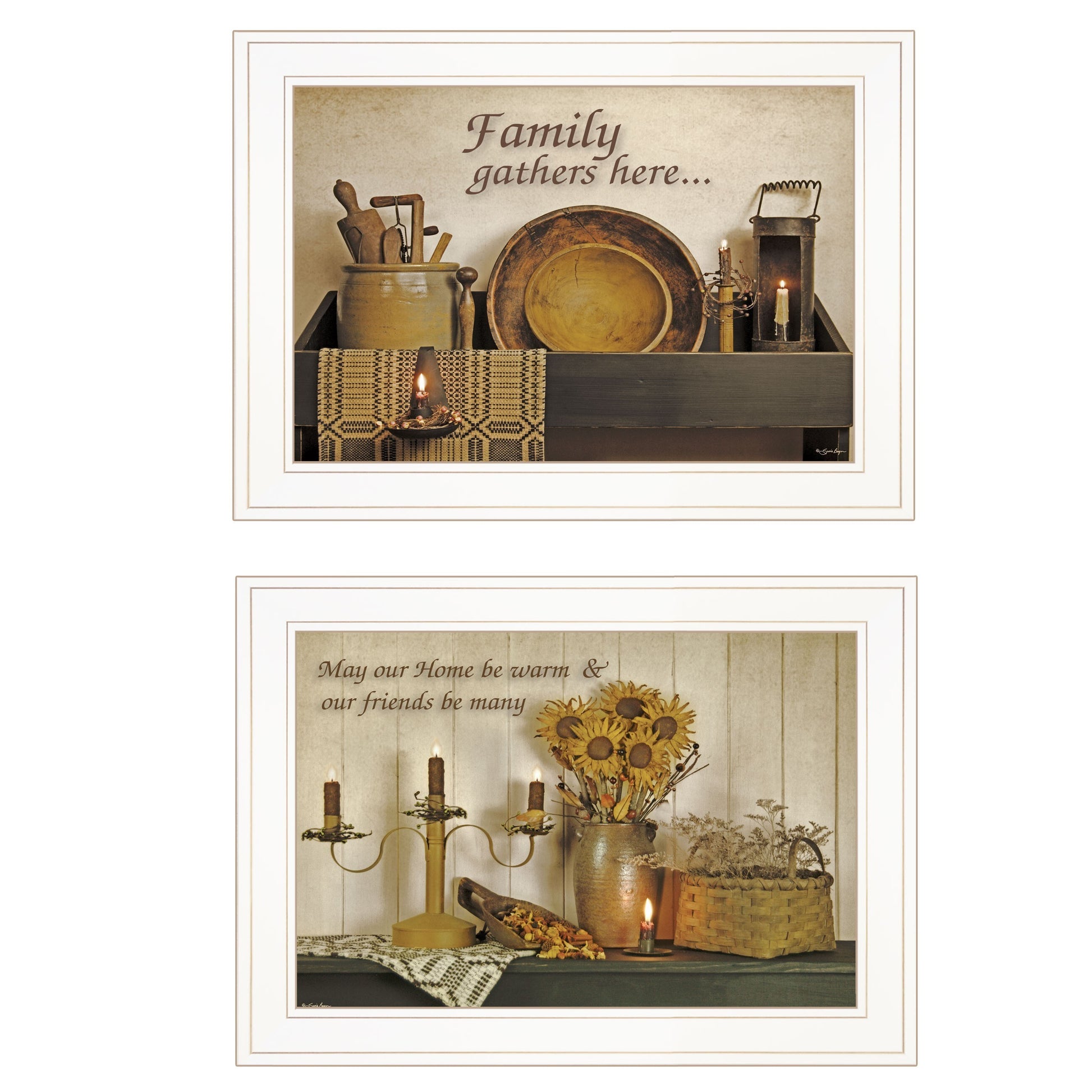 The set of two may our hearts be warm 1 white framed print kitchen wall art is the perfect decorative accessory for your home. This print is a visual artistic expression that allows you to decorate your space in style. Reproduced for you on paper, this hanging decorative accent will be a trendy and fashionable way to dress your walls. Adding this hanging wall art to your space to make your room feel more finished and attractive. Utilize this opportunity to create a focal point in the room with this fabulous wall decor option. 15-inch H x 19-inch W x 1-inch D