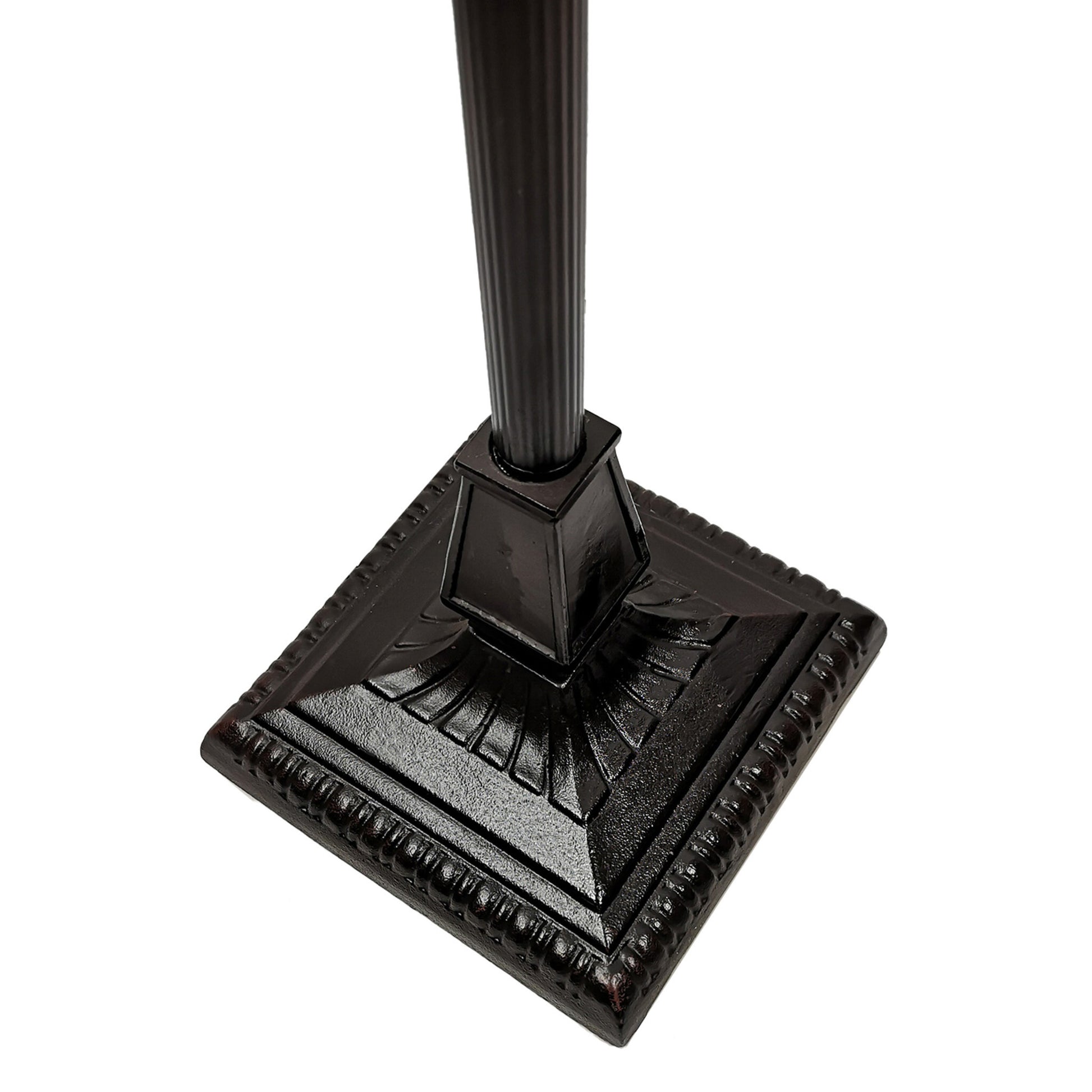 This 62" brown two light traditional shaped floor lamp with beige and blue stained glass cone shade is the perfect combination of design and function mixed with basic good looks. The lamp is made of sturdy metal and features a brown color. The brown base coloring infuses a warm and rich tone to your space. The lamp light itself is covered by a glass, cone shaped shade, making this a classy piece that will complement most any interior. Classically styled, this traditional lamp features a straight pole that extends upwards from a single base. Use this lamp anywhere and elevate the look of the whole space. It is perfect for virtually any decor. 62" H x 17" W x 17" D