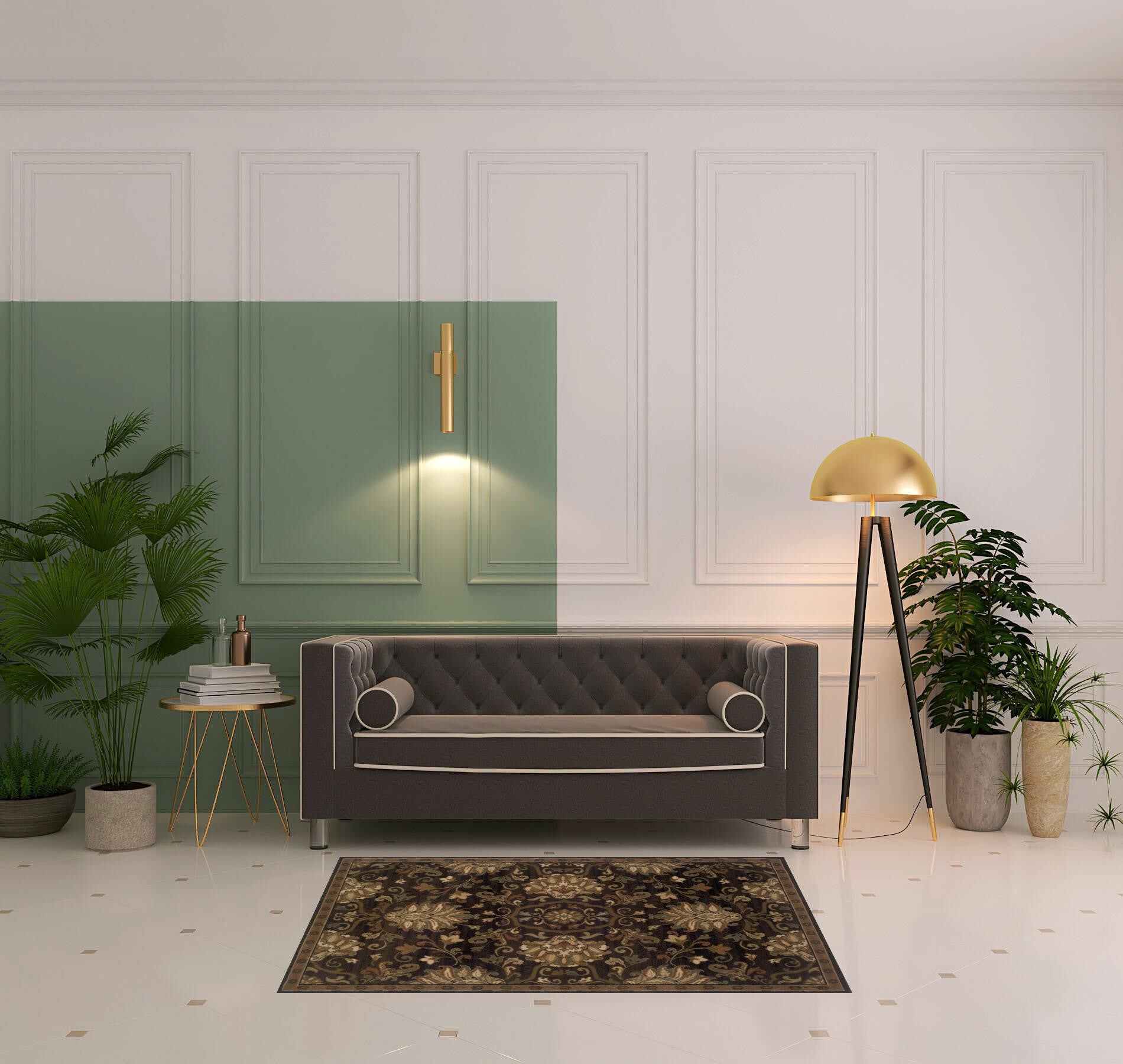 Set an inviting tone in your space with this 4' x 6' brown beige blue and red oriental power loom stain resistant area rug. This rectangle shaped rug features a oriental design in brown beige blue and red to give it visual interest. A classic shape marries with good looking design for your space Ideal for spaces with kids and pets, this rug is stain resistant to help repel stains and spilled liquids. Place this area rug against a hardwood or tile floor and it will enliven your living space with style and sophistication. 0.43" H x 46.06" W x 64.96" D