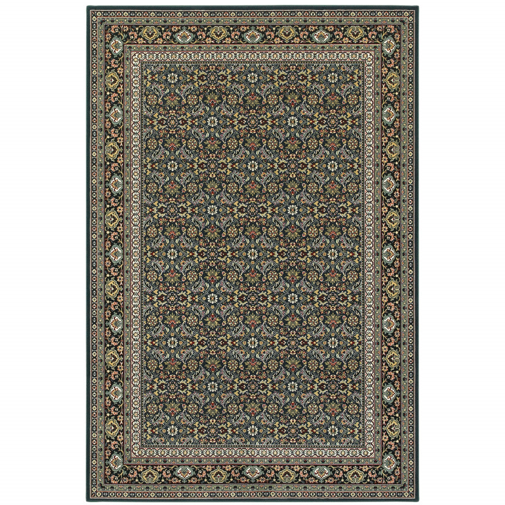 5' X 8' Navy Blue Green Red Ivory And Yellow Oriental Power Loom Stain Resistant Area Rug