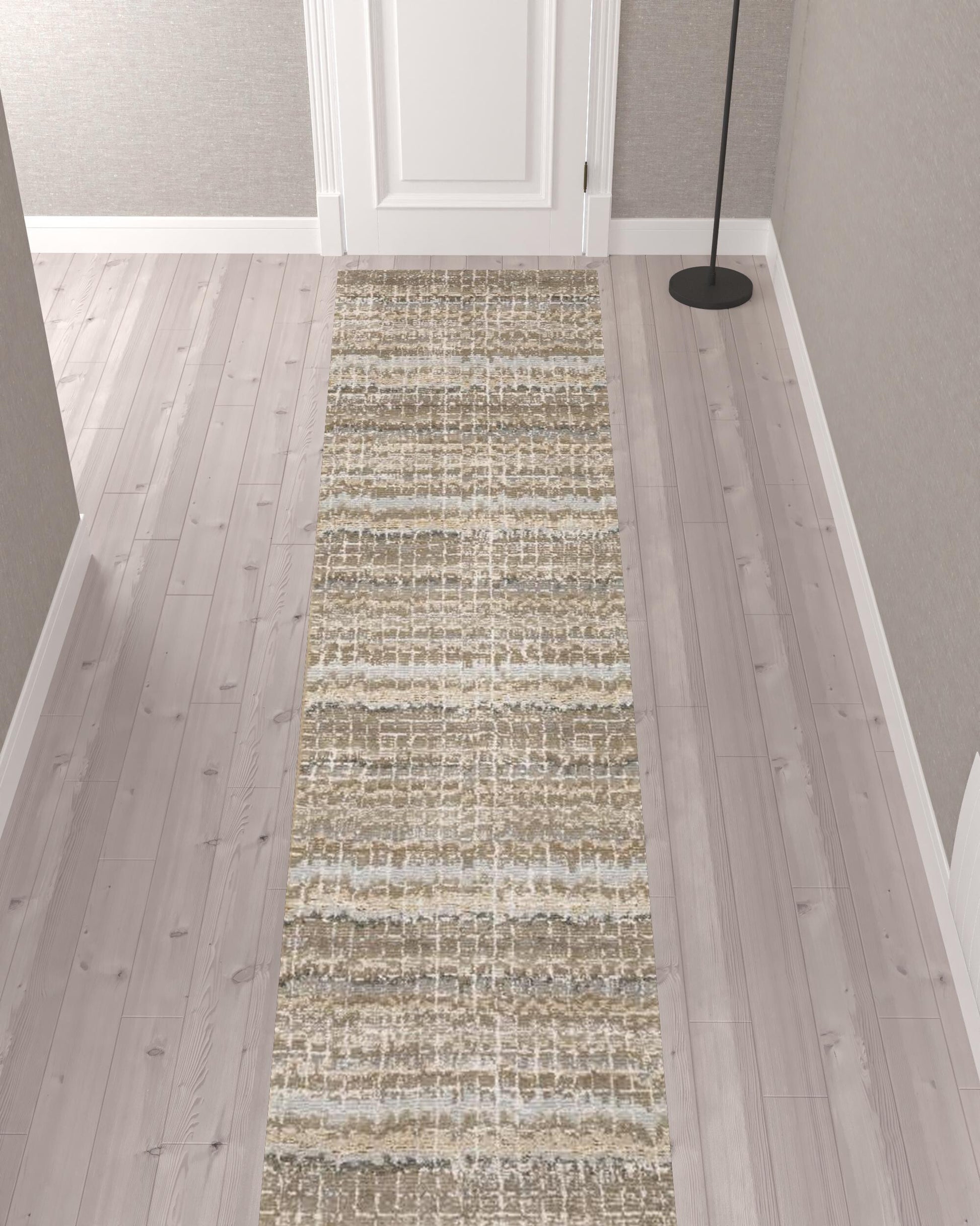 12' Runner Ivory Grey Tan and Brown Abstract Power Loom Runner Rug