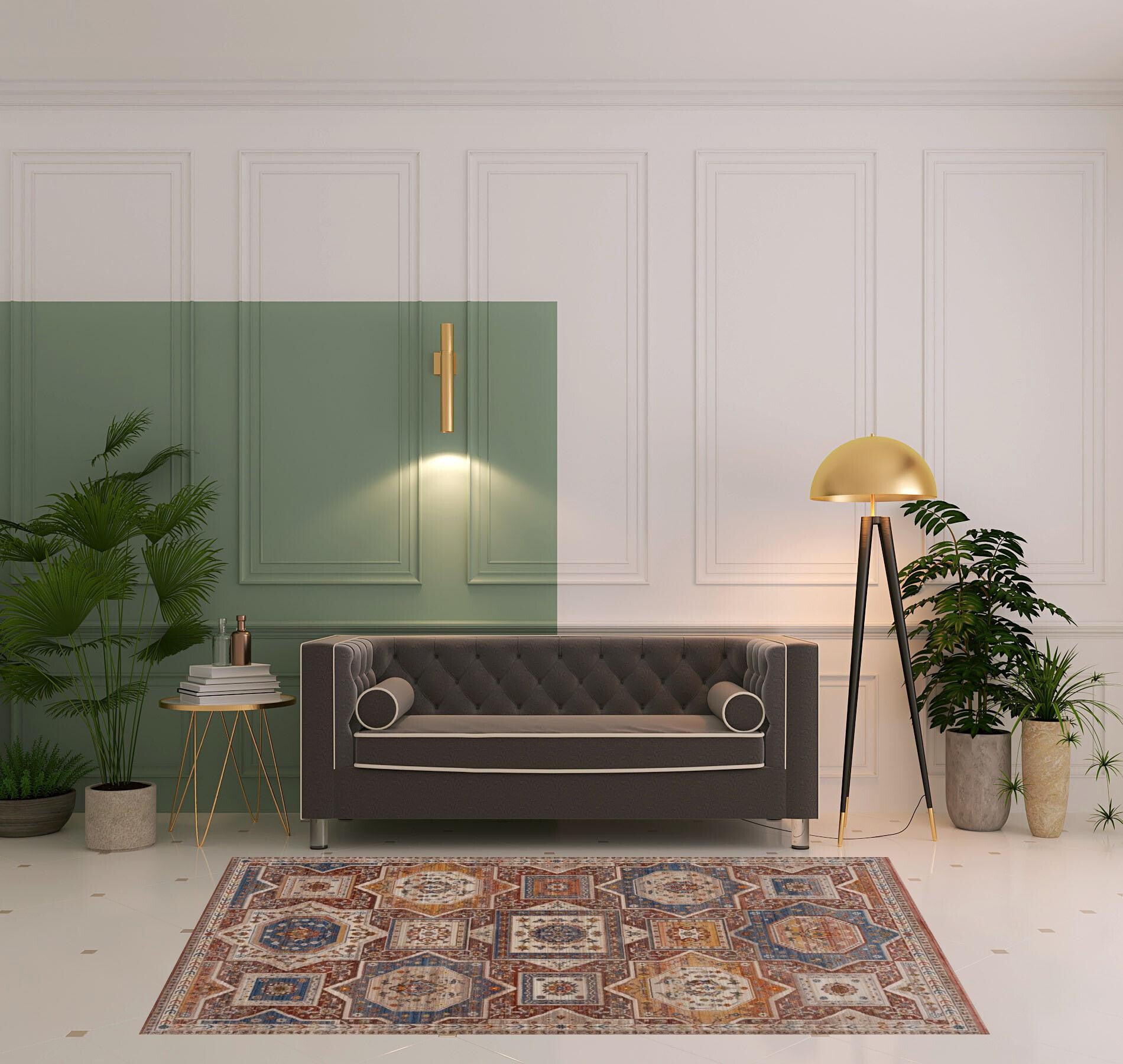 Add some artistry to your room with this 5' x 8' red southwestern area rug. This rectangle shaped rug features a southwestern design in red to give it visual interest. A classic shape marries with good looking design for your space Made in Turkey, this rug offers high quality combined with good looking designer sensibilities. Area Rugs help to give warmth and sense of home to your space. 0.25" H x 60" W x 96" D