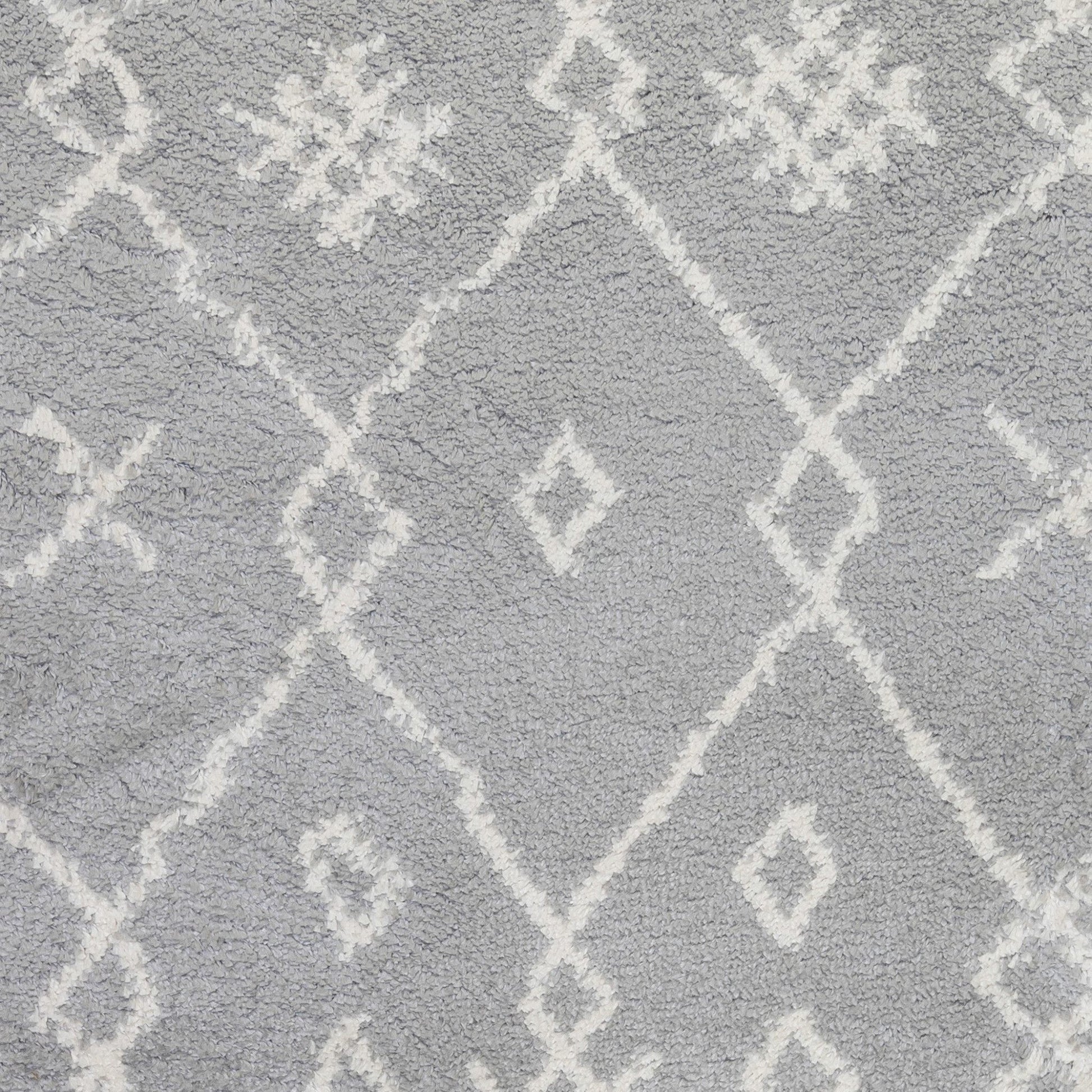 10' Gray and Ivory Geometric Shag Runner Rug
