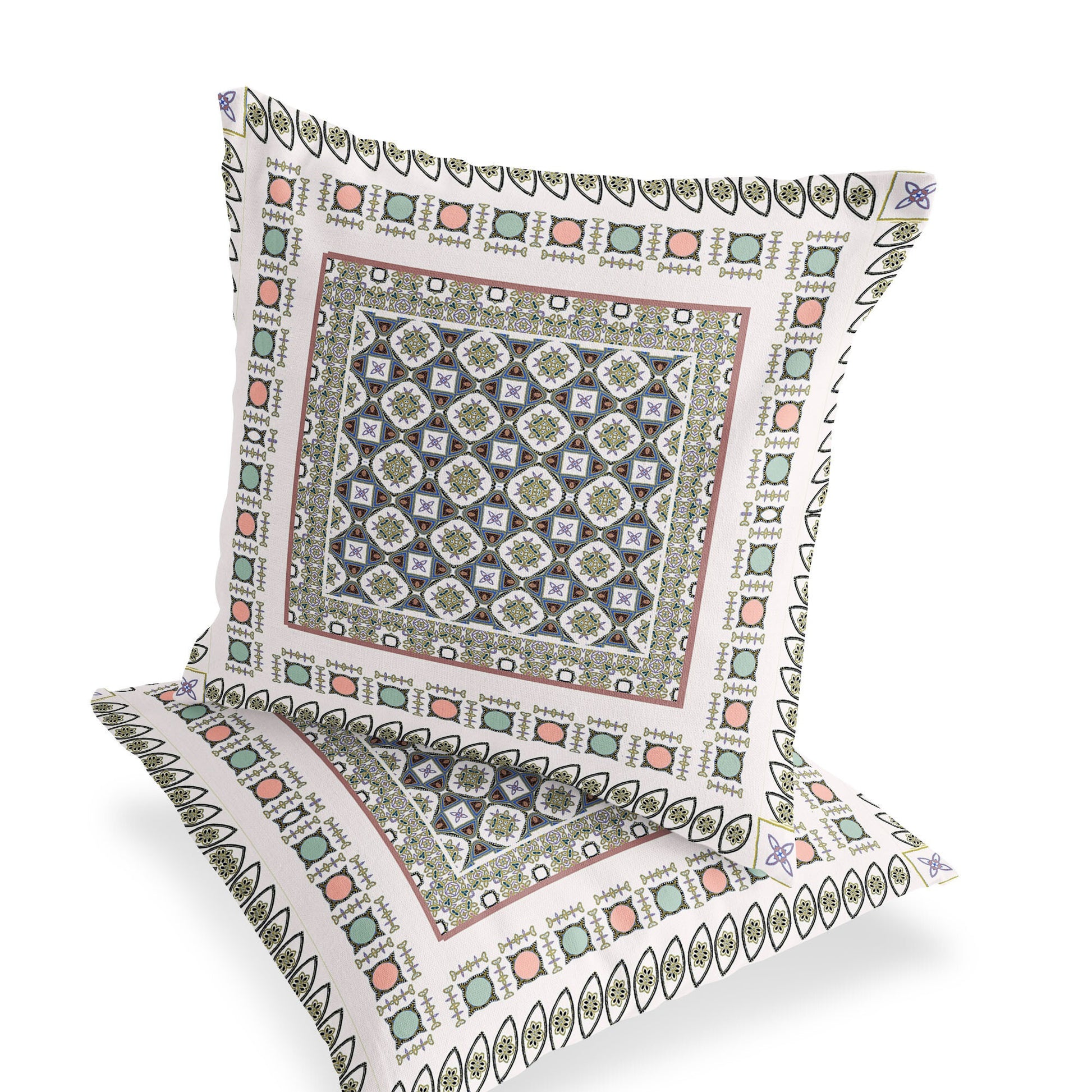 This set of two 16-inch x 16-inch blue and white blown seam floral indoor outdoor throw pillow will add a beautiful decorative accent to your decor. These great looking soft decorative pillows are expertly made of durable and long lasting polyester in a blue and white coloration. Durable and easy to care for this pillow is designed to withstand the elements and still look great. Decorative throw pillows add some pizazz but can also be comfy and supportive when you are lounging. 16-inch H x 16-inch W x 5-inch D
