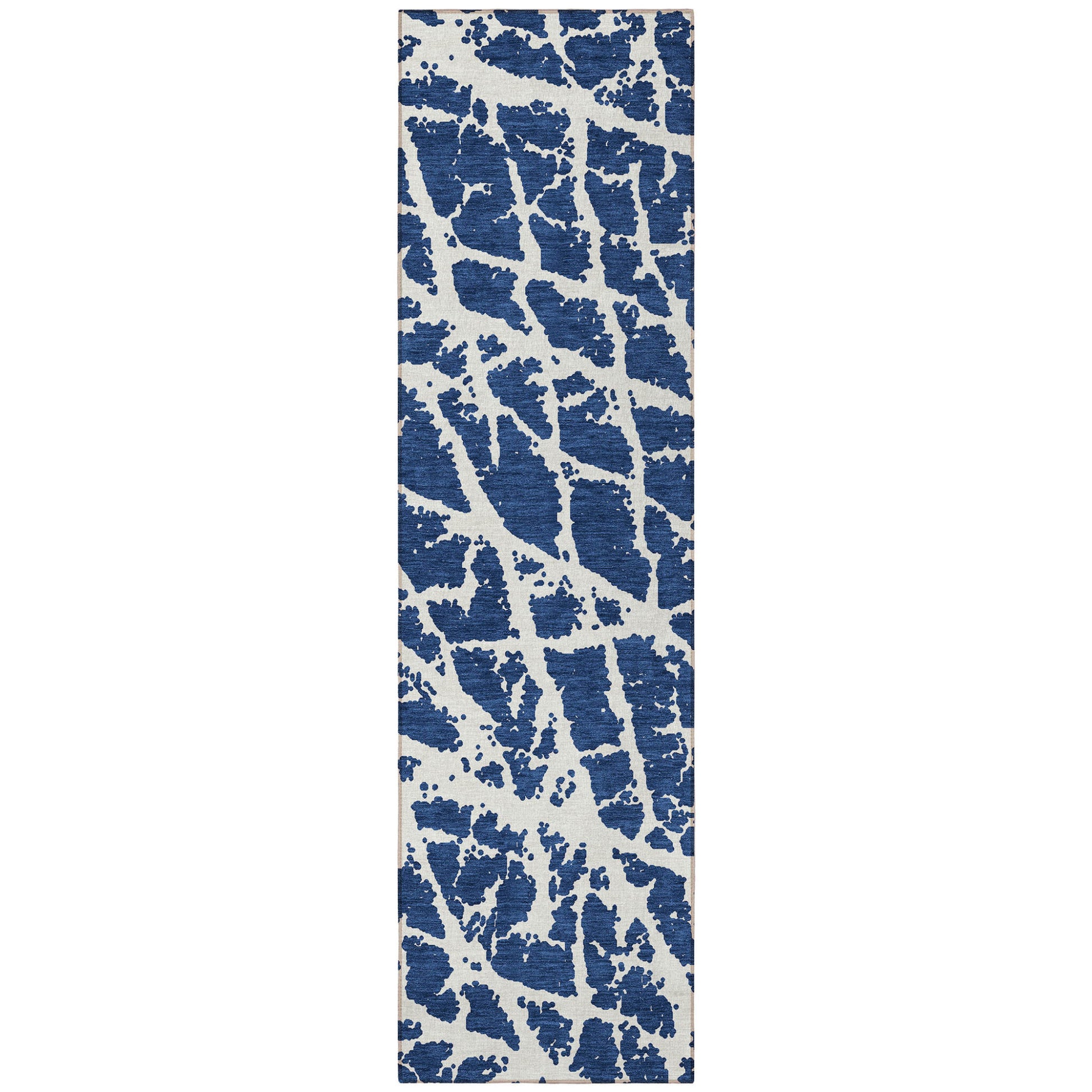 8' Runner Blue and White Abstract Washable Non Skid Indoor Outdoor Runner Rug