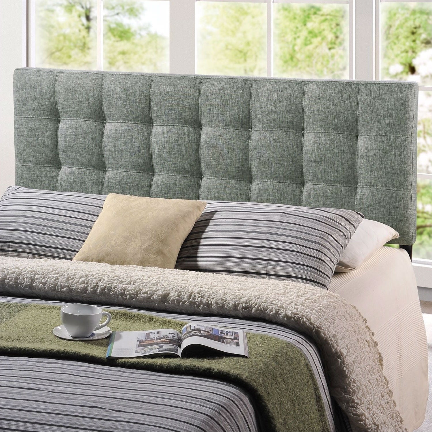 Introduce some boxy pizazz with the lavish design of this King size Grey Fabric Modern Button-Tufted Upholstered Headboard. Intended to be versatile for a wide range of modern bed styles, it's deep button tufting, and carefully aligned trim, present a uniform piece meant to cast prominence upon your room. Fully upholstered in padded fabric, it has a narrow piece meant to convey a strong sense of expansiveness within your entire surroundings. Set Includes: One - Headboard Product Dimensions: Overall Product Dimensions: 3.5"L x 61.5"W x 22.5"H Bedframe Mounting Location: 4.5 - 8.5"H Mounting Location A - Height to Top of Headboard: 52.5"H Mounting Location A - Height to Bottom of Headboard: 30.5"H Mounting Location B - Height to Top of Headboard: 50"H Mounting Location B - Height to Bottom of Headboard: 28"H Mounting Location C - Height to Top of Headboard: 47.5"H Mounting Location C - Height to Bottom of Headboard: 25.5"H Mounting Location D - Height to Top of Headboard: 45"H Mounting Location D - Height to Bottom of Headboard: 23"H Floor to Top of Headboard: 45.5 - 53"H Floor to Bottom of Headboard: 23 - 30.5"H.