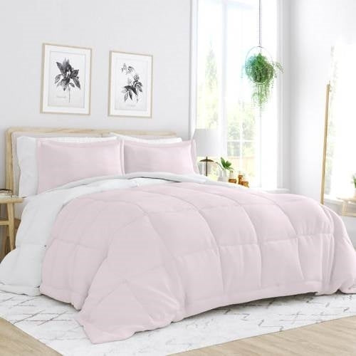 Full/Queen 3-Piece Microfiber Reversible Comforter Set in Blush Pink and White